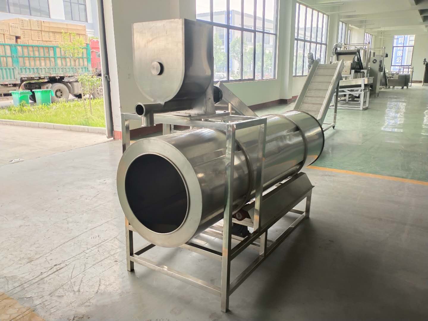 該設備具有傾角式調(diào)味滾筒,全自動控制轉(zhuǎn)速和物料的容量,適用于流水線連續(xù)性調(diào)味作業(yè).配備螺旋送粉裝置,并在撒粉同時自主攪拌,使調(diào)味料不會因比重不同或反鹵,而形成的沉積,粘連,篷空.撒粉均勻,定量準確.